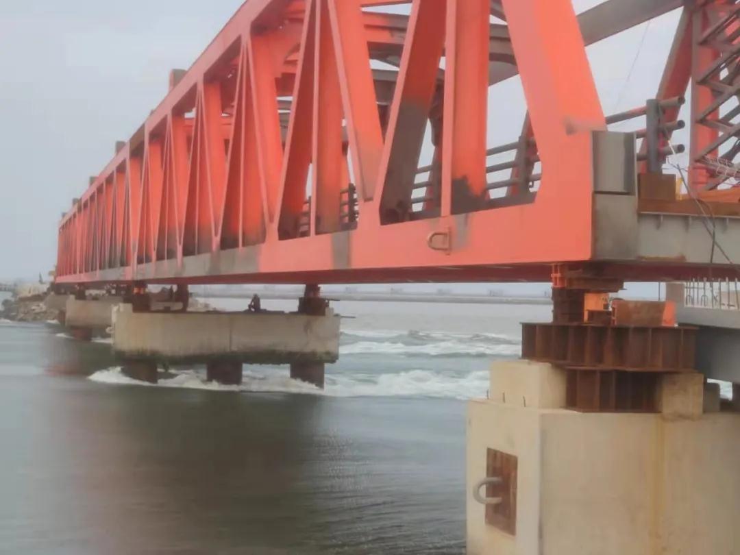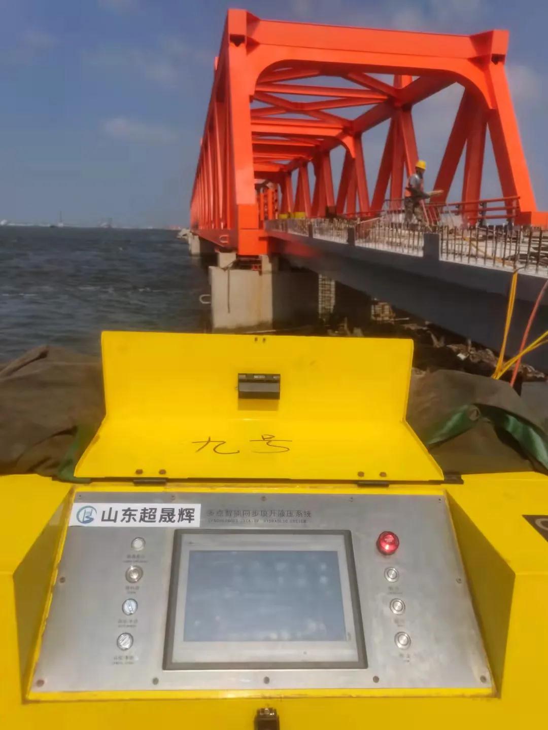 此次工程由中交三航局承建,山東超晟輝負(fù)責(zé)大橋鋼箱梁頂推及卸載工程所需設(shè)備、勞務(wù)及技術(shù)服務(wù)。工程已于9月15日安全順利完工。