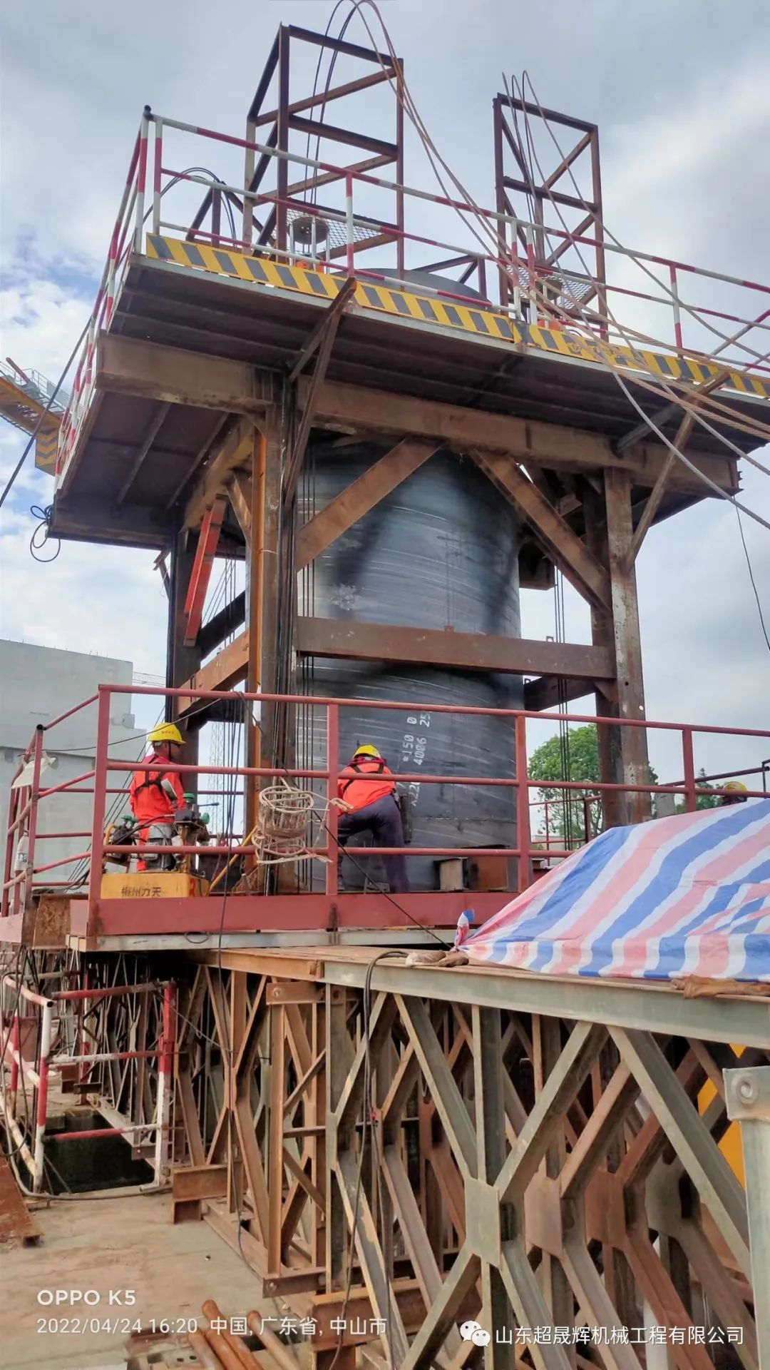 中山西環(huán)A段永寧互通深水冷凝池樁基護筒下放工程